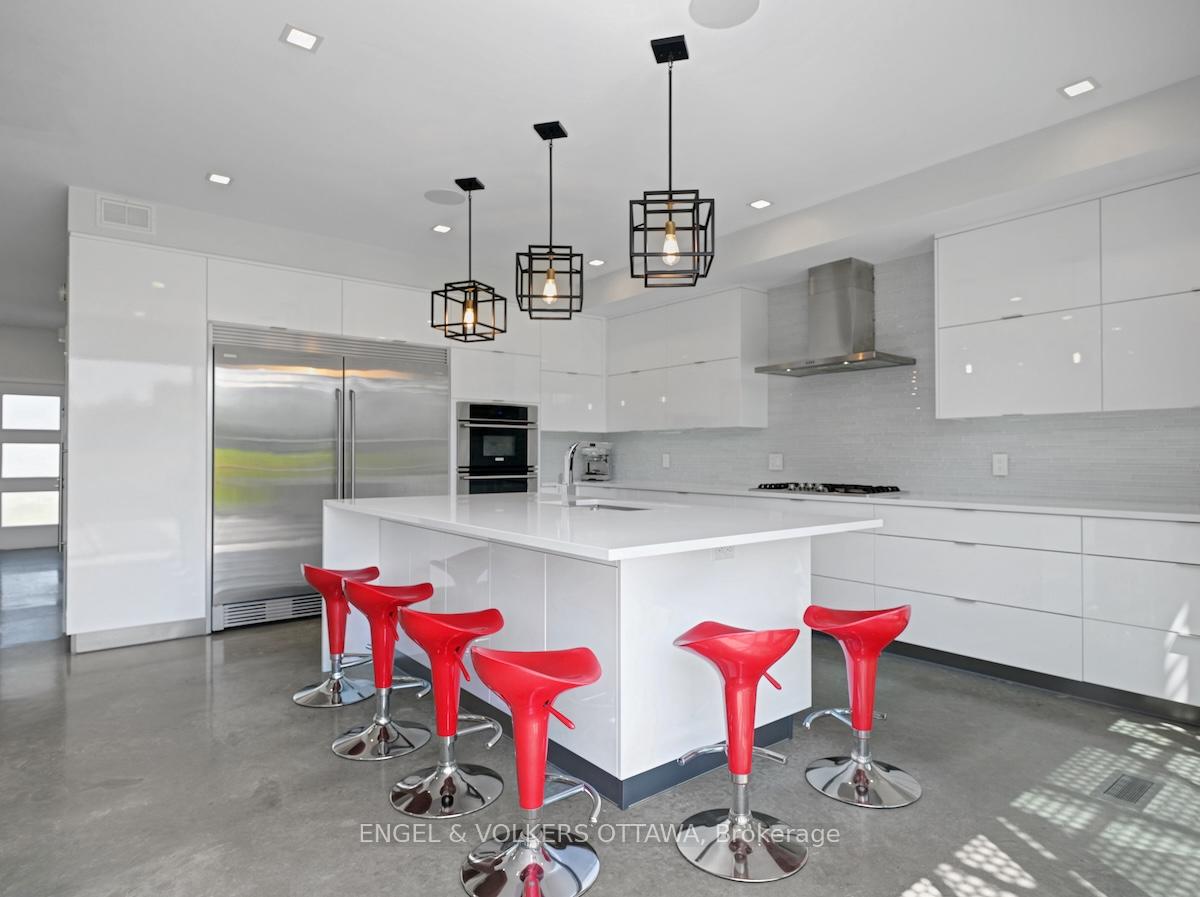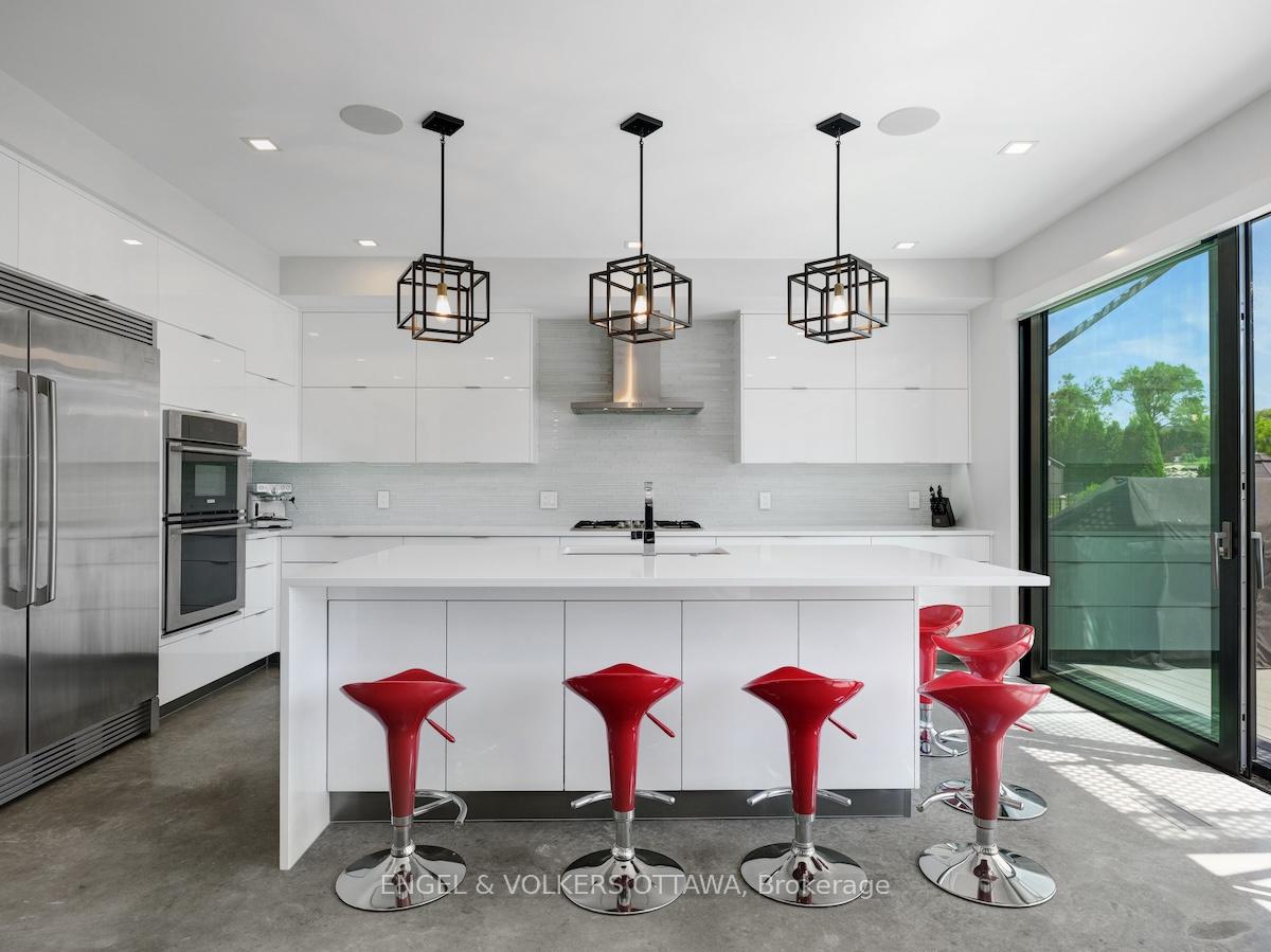Welcome to this exceptional custom-built, automated home, crafted with precision and modern elegance. A striking centrepiece of this property is the stunning centre staircase with glass walls, complemented by sleek concrete floors and a beautiful natural gas fireplace that adds both warmth and style to the open-concept living space.This home is flooded with natural light, thanks to its southern exposure, floor-toceiling windows, and two oversized 5-foot patio doors. These doors open up to an expansive composite deck, offering the perfect space for entertaining or simply enjoying the outdoors.The gourmet kitchen is a true delight, featuring high-end stainless steel appliances, quartz countertops, and a spacious centre island with a built-in sink. Elegant pendant lighting adds extra flair, while the wine fridge, which holds 140+ bottles, ensures youre always ready to entertain in style.The cozy living room, complete with a fireplace, offers a perfect retreat, while the adjacent dining area comfortably accommodates a large table. The homes cutting-edge Control 4 automation system lets you easily adjust lighting and music, with compatibility for Apple, Google, Spotify, and more. *Ipad required. Lutron switches and pot lights throughout create the ideal ambiance.The primary suite is a luxurious escape, offering a spa-like ensuite with dual rain showers, massaging jets, a separate soaker tub, and double sinks. The expansive walk-in closet and beauty station complete the indulgent retreat. Second bedroom feature a large closet and ensuite bathrooms, while two additional bedrooms offers ample storage and natural light.The upstairs laundry featuring retractable doors and a nat gas dryer. The large, sun-filled basement provides possibilities for a gym, office, or rec room.The fully insulated two-door garage a natural gas heater and high enough for a car lift, while the driveway offers parking for six vehicles. Irrigation system for lawn